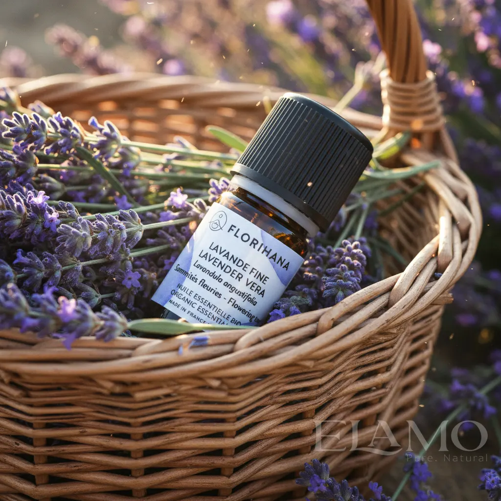 Eteryczny olejek lawendowy BIO (Lavandula angustifolia) Florihana, destylowany parą wodną ze świeżych, kwitnących wierzchołków. 100% naturalny, o czystym, kwiatowo-ziołowym aromacie (dominują linalol i octan linalilu). Znany z wszechstronności w aromaterapii — może wspierać relaks, komfort snu i wyciszenie. Ceniony w pielęgnacji skóry (po rozcieńczeniu); doskonały do dyfuzora, kąpieli i masażu.