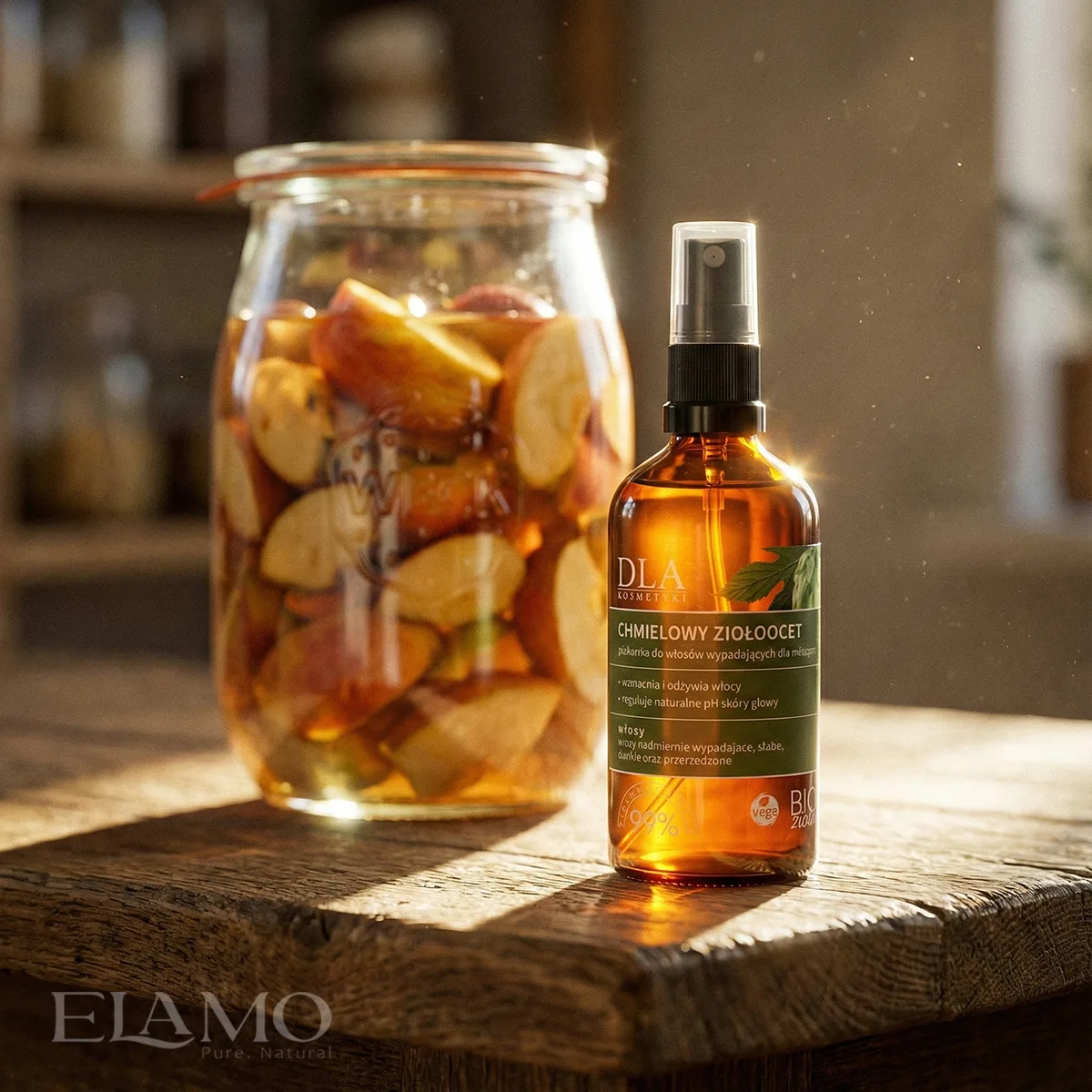 Chmielowy Ziołoocet marki Kosmetyki DLA to specjalistyczna kuracja stworzona z myślą o męskich potrzebach. To nie jest zwykła odżywka – to powrót do najskuteczniejszych, tradycyjnych metod pielęgnacji, opartych na wiedzy ludowej i potędze natury. Jeśli zmagasz się z włosami słabymi, przerzedzonymi, a Twoja skóra głowy wymaga ukojenia i regulacji, ta płukanka jest brakującym ogniwem Twojej codziennej rutyny.Produkt stanowi odpowiedź na problemy łysienia androgenowego, nadmiernego przetłuszczania oraz dyskomfortu skóry głowy (swędzenie, łupież). Jego siła tkwi w prostocie: 99% składu to czysty macerat ziołowy na bazie żywego octu jabłkowego.