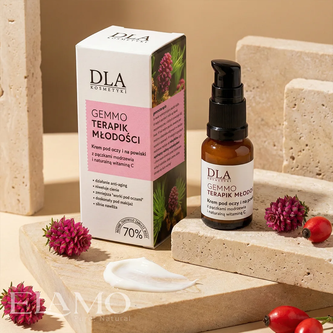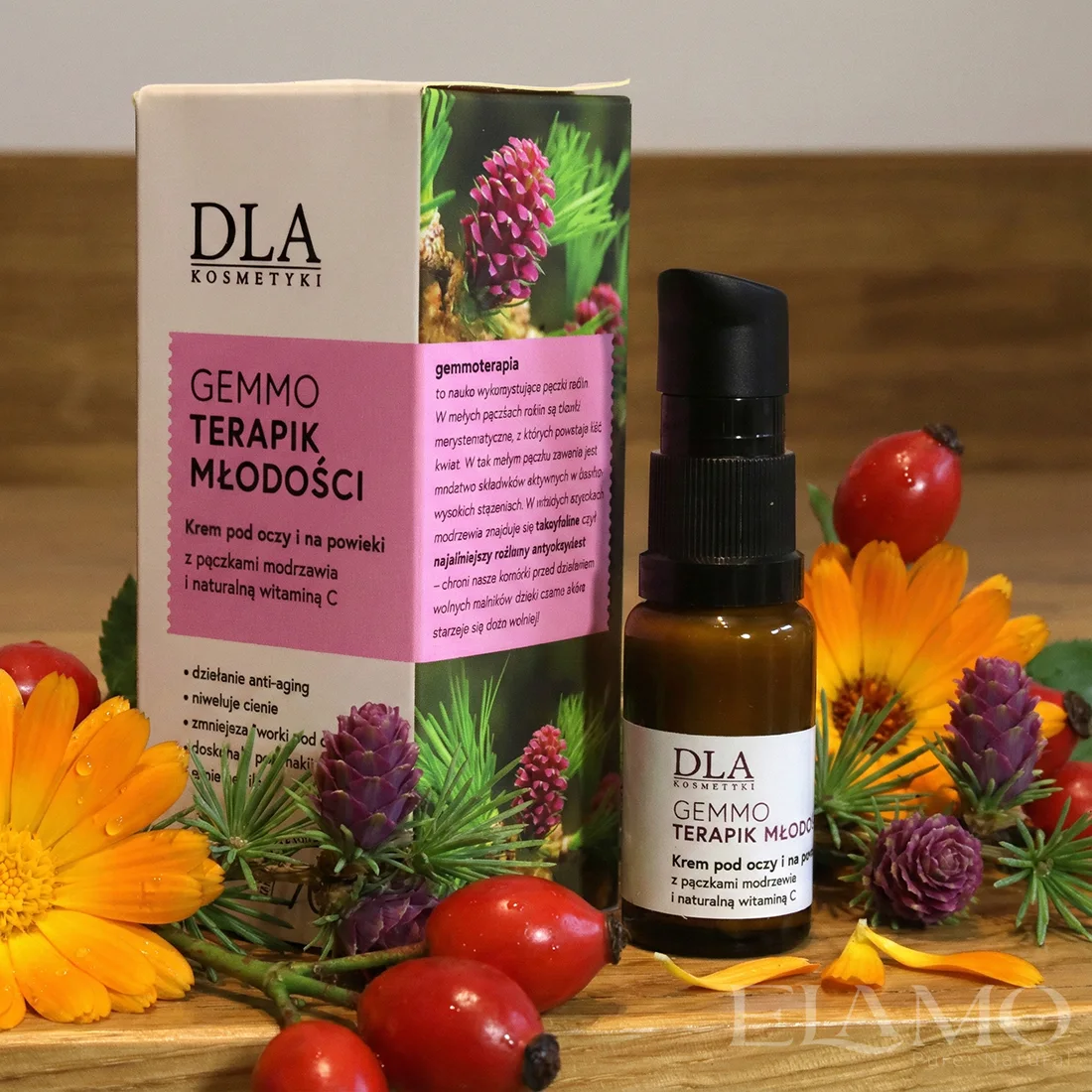 Skóra wokół oczu starzeje się najszybciej – jest cienka i pozbawiona gruczołów łojowych. Gemmoterapik Młodości został opracowany przez markę Kosmetyki DLA z myślą o kobietach, które zauważają u siebie: