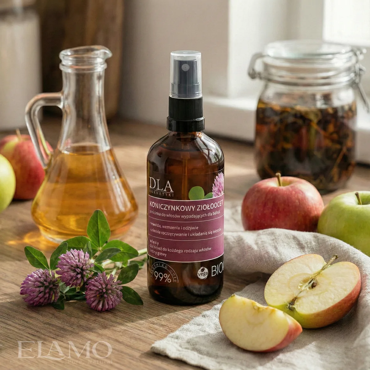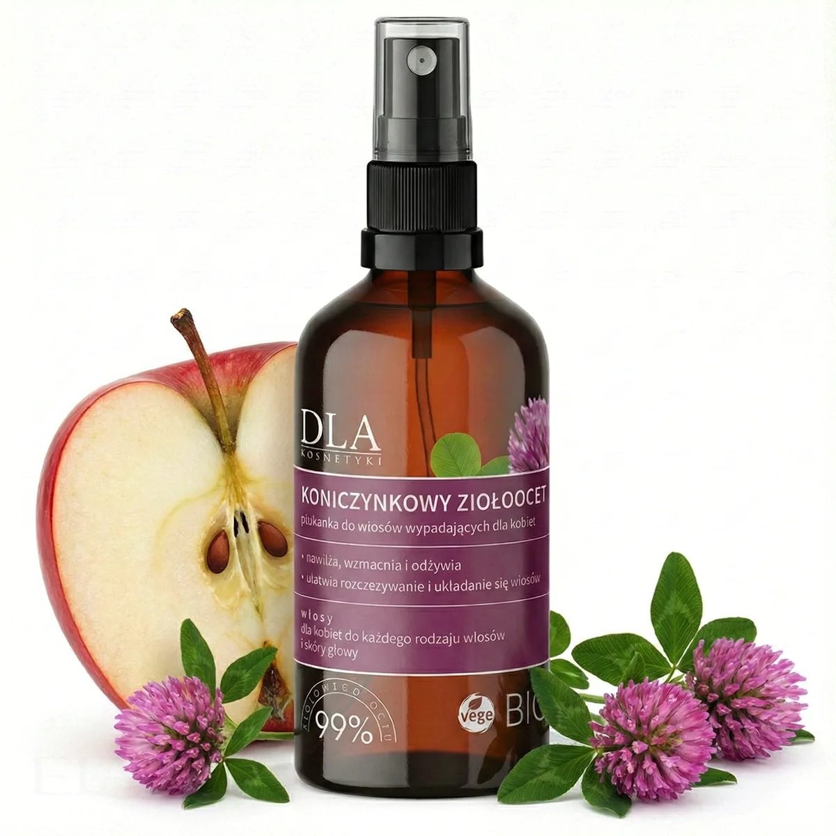 Stworzyliśmy ten produkt z myślą o problemach, z jakimi borykają się współczesne Polki. To skuteczna płukanka do włosów wypadających dla kobiet szukających rozwiązań wolnych od chemii. Receptura opiera się na najstarszej, sprawdzonej wiedzy zielarskiej: połączeniu żywego octu jabłkowego z ekstraktem z czerwonej koniczyny. To nie jest zwykły kosmetyk – to funkcjonalny tonik, który przywraca skórze głowy fizjologiczne pH.