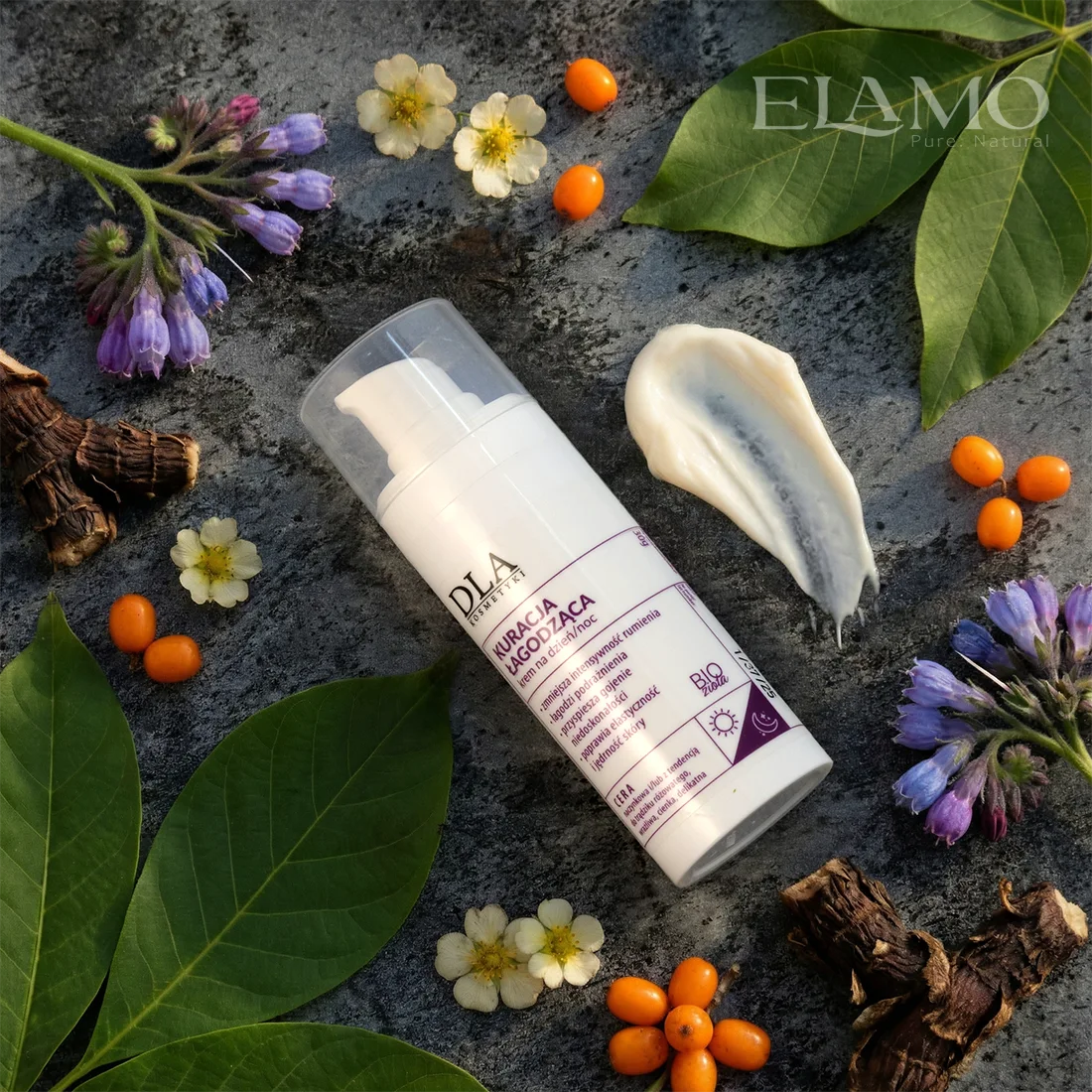 - Rokitnik + lnianka + panthenol: nawilżenie i ukojenie