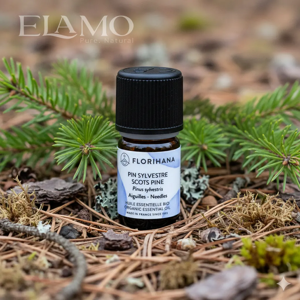 Świeży, żywiczny olejek sosnowy BIO (Pinus sylvestris) Florihana z igliwia i młodych gałązek, destylowany parą wodną. Wspiera komfort oddychania, odświeża powietrze i dodaje energii — idealny do dyfuzora, inhalacji i masażu po rozcieńczeniu.