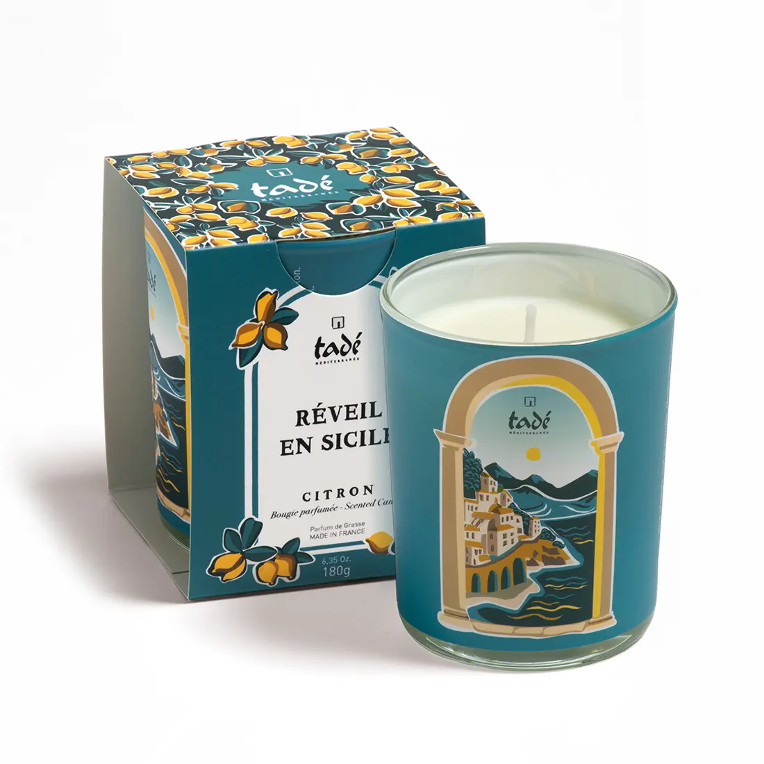 Świeca Zapachowa Cytrusowy Owoc Sycylii „Réveil en Sicile” 100% Wosk Roślinny 180g – Tadé
