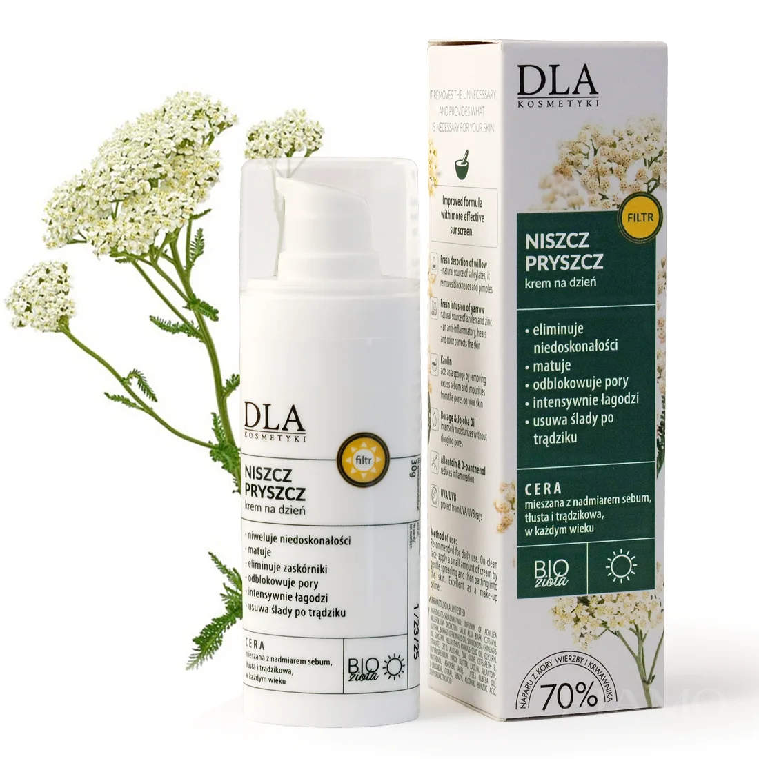 - Niszcz Pryszcz – Krem na dzień (30 g) – lekka pielęgnacja, długie zmatowienie i ochrona na co dzień.